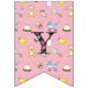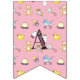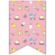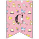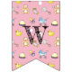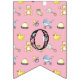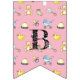 Cute pattern with baby items on the pink background: teddy, rubber ducky, pacifier, baby bottle, stroller... For a baby girl. Welcome baby!