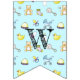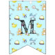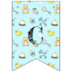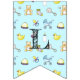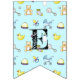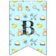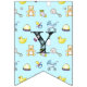 Cute pattern with baby items on the blue background: teddy, rubber ducky, pacifier, baby bottle, stroller... For a baby boy. Welcome baby!