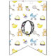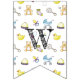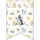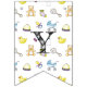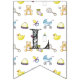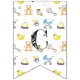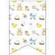 Cute pattern with baby items on the white background: teddy, rubber ducky, pacifier, baby bottle, stroller... Gender neutral. Welcome baby!