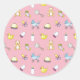 Cute pattern with baby items on the pink background: teddy, rubber ducky, pacifier, baby bottle, stroller... For a baby girl.