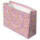 Cute pattern with baby items on the pink background: teddy, rubber ducky, pacifier, baby bottle, stroller... For a baby girl.