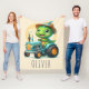 Cute Baby Trex Dinosaur Driving a Blue Tractor Fleece Blanket