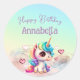 Cute Baby Unicorn and Hearts on Rainbow Classic Round Sticker