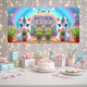 This colourful Banner features a cute baby unicorn with rainbow and flowers in pink and blue. Perfect for little girls! Cute party decor! Custom text.
