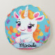 Cute Baby Unicorn Butterfly Custom Name Round Cushion