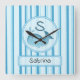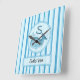 Cute Baby Whale Blue Stripes Square Wall Clock