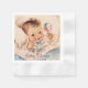 Pretty vintage little baby holding a rattle while cuddled up in his/her crib. Personalise with your text, choose your favourite font and colour.