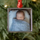 Cute Baby's 1st Christmas Metal Ornament. Baby's first is in a whimsical font, with the words held together with a little ribbon. All text colours can be edited to complement your photo. Personalise with year and baby's name. It's a keepsake ornament that is sure to be treasured year after year! © Kimbellished, LLC
