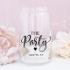 Cute set of 4 bachelorette party can glasses featuring "Wife of the Party" and "The Party" in a chic script and a heart and the party location in simple typography. You can change the party destination to the names of the bride and her guests. Single glasses are available for additional guests (message us for the link).