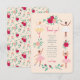 Adorable ballet themed little girls party invitation featuring a sweet illustration of four ballerinas in a tutu dancing in between flowers roses. This cute " Our little ballerina! " girl's 3 rd birthday invitation features a light pink, off-white background and red colour palette. The reverse side features a blush pink background with floral patterns. Personalise it for your needs. You can find matching products at my store. Original artwork by Caroline Bonne Müller.