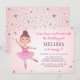 Cute Ballerina Pink Silver Stars Girl Birthday Invitation