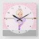 Cute ballerina square wall clock