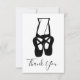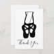 Flat thank You card with a black and white illustration of a ballet dancers lower legs and ballet slippers, standing on her toes, en pointe.