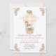 Adorable animals in a sweet hot air balloon announce the coming first birthday of your baby girl! A sloth sleeps on top of the balloon which is filled with a Zebra, Giraffe, Koala and Monkey surrounded by muted flowers and foliage. Graphically designed by internationally licensed Artist and designer, Audrey Jeanne Roberts, copyright.
