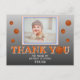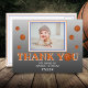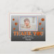 Cute Basketball Balls Chalkboard Photo Thank you Postcard. Cute basketball theme birthday thank you card for kids with a photo on a dark grey gradient chalkboard background. Add your photo, name and text.