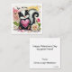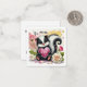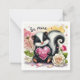 Stinkin' cute skunk sends hearts and love for new classroom friendships this Valentine's day. This cute, black and white skunk sits holding a glittery, pink heart with lace border and inscribed with "BE MINE". Written above left, in black cursive is also "BE MINE". White and pink roses and rose petals lay at her feet. A pink and gold watercolor swash with drips and splatters in the backdrop.