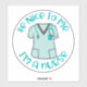Cute Be Nice to Me I'm a Nurse Decal Sticker. Sticker is outlined in white with green scrubs and stethoscope. You can use it on a laptop, luggage, skateboards, and much more.