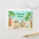 This beach Thank You postcard features a cute baby sipping a lemon aid, standing with a sand bucket, an impressive sandcastle and beach ball surrounded by tropical palm trees. Some graphics by artwork©delightful-doodles.com and CherylSeslarDesigns.com at DigiWebStudio.com.