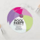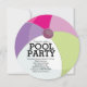 Fun die cut round beach ball pool party invitation in purple, pink, lime green & white. Modern & cute for an adult summer pool party, kids pool party, beach party or cookout barbecue pool get together.