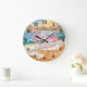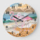 cute Beach pink flamingos Large Clock