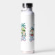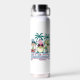 The bottle looks even better in real life. The ice cubes I put in lasts all day! I have my bottle with me all the time. It's summer and having something cold to drink feels amazing. With this bottle I always have something super cold. I have only tried the hot drink once and it lasted a long time as well. The color blue is a navy blue and the white printed on it is vibrant. It printed perfectly. I love my personalized smile water bottle.