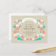Beach wedding save the date postcard with sea treasures wreath from white sand dollars, coral seahorses, corals, white sea pearls and turquoise seashells... Cute fun and elegant beach save the date postcard.