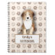 Notebook with charming Beagle. This adorable design showcases cute sitting Beagle. Against a backdrop of dog footprints. Bone like text and customisable name.