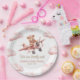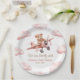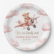Cute Bear Aeroplane Pink Girl Baby Shower Paper Plate