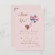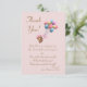 Cute Bear and Balloons Theme Flat Thank You Card design is the perfect way to thank your guests after your baby shower. Design features the adorable image of a cuddly teddy bear wearing a pink bow and holding on to a bunch of balloons. The words, "Thank You!" are displayed in decorative lettering in upper left corner. Below image, your customisable text is displayed in gold lettering. Designed to coordinate with the Cute Bear and Balloons Themed invitations and accessories.
