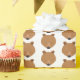Cute bear wrapping paper with a pattern of cartoon bear faces on a white background.