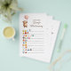 Host a magical baby shower with this adorable watercolor bear Disney movie emoji pictionary game! This charming game card features a sweet watercolor bear holding a balloon, surrounded by popular Disney movie emoji clues. It's the perfect way to add a touch of whimsy and fun to your celebration. Guests will love guessing the Disney movies based on the creative emoji combinations. This game is designed to be engaging and entertaining for all your shower guests, creating lasting memories of your special day. Printed on high-quality paper, this game card ensures a delightful experience for everyone. Make your baby shower unforgettable with this unique and enchanting Disney-themed emoji pictionary game.