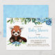 Adorable blue greenery eucalyptus floral watercolor baby red panda bear, we can bearly wait, baby boy baby shower. You can customise this sweet invitation with your own text.