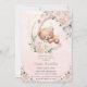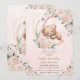 Cute Bear Blush Ivory Floral Girl Baby Shower Invitation