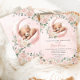 Cute Bear Crescent Moon Blush Floral Baby Shower Invitation