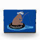 This cute bear is fishing from a car inner tube with a seagull giving advice where to catch the best fish. Drawn in fun cartoon illustration style.
