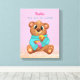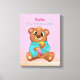 Cute Bear Eating Honey, Child's Name/Message, Pink Canvas Print