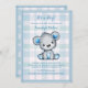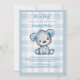 Send these adorable, for boy, baby shower designs to your guests because they'll love them. Cute bear on plaid baby blue and green blanket with stitched hem. Templates created for you.