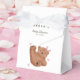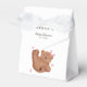 Cute and rustic girl's baby shower favour box featuring illustration of a baby bear on her back with pink bow and hearts.