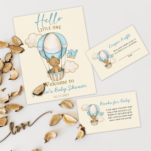 The "Cute Bear Hello Little One Baby Shower Collection" is the perfect choice for celebrating the arrival of a baby boy. Featuring adorable bear-themed designs in soft blue and neutral tones, this collection adds a touch of sweetness to any baby shower. With charming decorations and invitations, it creates a warm and welcoming atmosphere that’s perfect for honouring the little one on the way. The cute bear motif and gentle colour palette make this collection both endearing and elegant, making it a delightful choice for a memorable baby shower.
