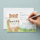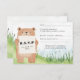 Cute bear holding sign RSVP card grass background