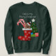 Christmas illustration featuring a Christmas tree and Christmas presents in the background with a cute teddy bear inside a red snowflake pattern Christmas stocking with a couple of peppermint candy canes also inside the stocking. Make it unique by customising the sample text Have a cosy Merry Christmas