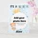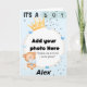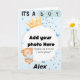 A cute greetings card featuring a cute bear for a newborn boy saying "It's a boy". You can change the name on the card and add/change the photo. Please use a circle or a round photo (you may crop or edit them using photo editing software such as Photoshop.) and save them as a png file with a transparent background or without white background for better results. Please drop me a message if you need more help with this design.