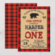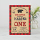 Cute Bear Lumberjack 1st Birthday Woodland Plaid Invitation