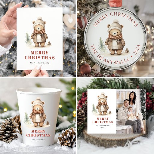 Cute Watercolor Bear Merry Christmas CollectionDesigned by Akhates Designs