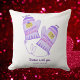 Cute Lovers Throw Pillow featuring illustration of purple mittens with adorable bear couple and hearts pattern. Names, romantic text of “Smitten with you beary much!” and “We Make The Perfect Pair!” could be personalized with words of your own choice. Perfect for your loved one as gift for Valentine’s Day or any special occasion!
