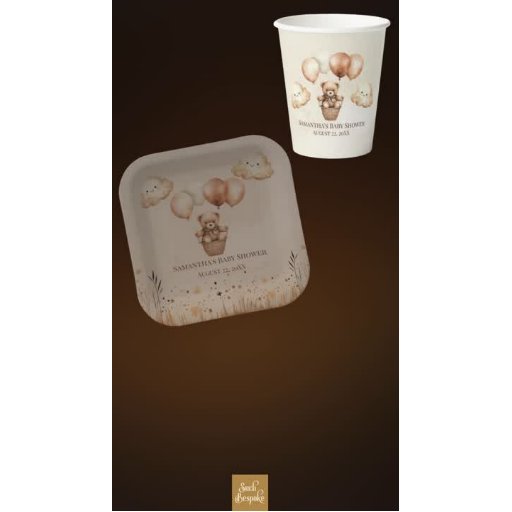 This adorable design features the words "We can bearly wait" and is perfect for your bear themed baby shower! Featuring the neutral colours beige, cream, tan and brown with an adorable teddy bear in basket held up with balloons, this design is great for a girl or boy! Personalise it for your next bear-y special event!