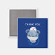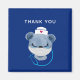 Thank you magnet with a cute illustration of a blue bear wearing a nurses hat with a little heart on it. Also wearing a protective face mask and has a blue stethescope too.