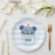 Paper plates with a cute illustration of a blue bear wearing a nurses hat with a little heart on it. Also wearing a protective face mask and has a blue stethescope too.