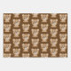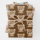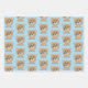A set of 3 wrapping paper sheets (one brown , one pink one blue) for a baby shower with the pattern of the face of a bear with a heart on hiss cheek .