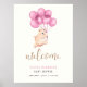 Cute Bear Pink Balloon Baby Shower Welcome Sign